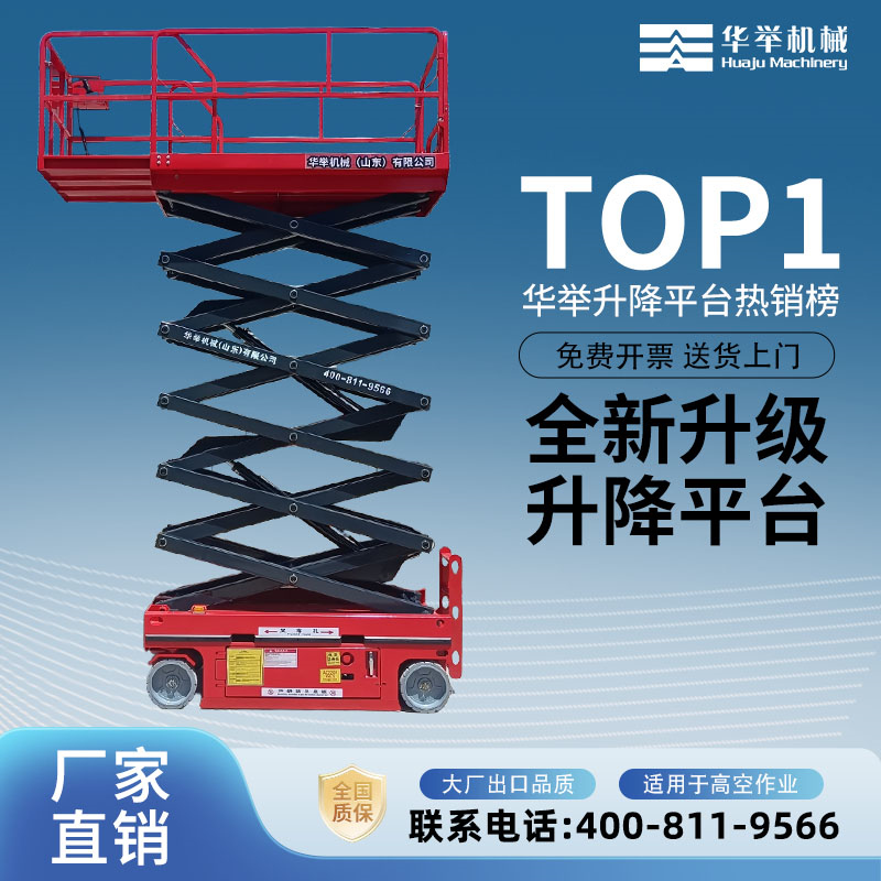 华举机械(山东)有限公司是一家研发设计、生产加工、销售、出口外贸为一体的专业化升降机械企业,公司主营业务液压升降机、升降平台、登高升降车、电动升降机、汽车举升机、高空作业升降机、剪叉式升降机、折臂曲臂升降机、移动式和固定式升降机等升降机械。公司产品广泛用于厂房维护、工业安装、设备检修、建筑工程、汽车维修保养、仓库、航空、机场、港口、车站、加油站、体育场、展览馆等各种行业和场所。